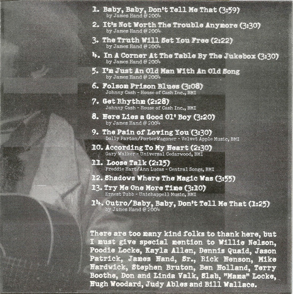 Release is packaged in a clear jewel case with an opaque black disc tray. Includes a 4-page insert and a back cover inlay. Recorded live at [l1096804 South Austin, Texas. Track times are printed on page 3 of the insert. Track 5, however, does not have a track time printed.