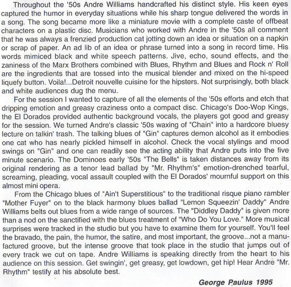 Andre Williams (2), Chicago Blues & Rhythm Band With The El Dorados : Fat Back & Corn Liquor (CD, Album)