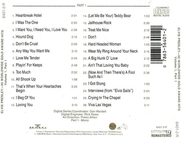 Elvis Presley - 50 Worldwide Gold Award Hits, Volume 1 (CD)