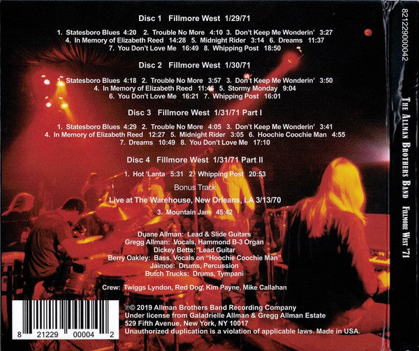 The Allman Brothers Band : Fillmore West '71 (4xCD, Album)