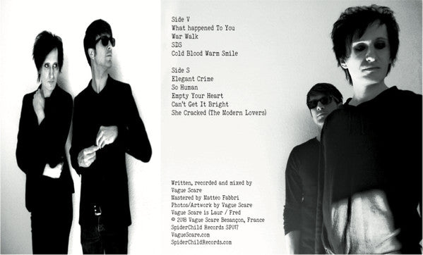Limited to 100 handnumbered copies on deluxe chrome tape w/ bonus track "She Cracked" Vague Scare is Laur / Fred © 2018 Vague Scare Besançon, France vaguescare.com spiderchildrecords.com