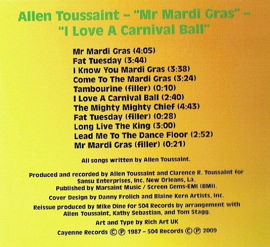 Allen Toussaint : Mr. Mardi Gras (I Love A Carnival Ball) (CD, RM)