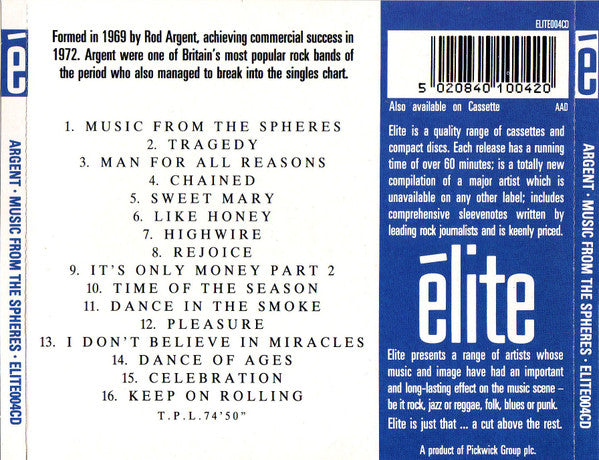 Copyright in this sound recording owned by Sony Music Entertainment Inc. and licensed to Pickwick International Inc. (Great Britain) Ltd. for the Elite Records release. Total playing time 74' 50". Comes with a 4 panel front insert with commentary by Chris White. Pressed by Disctronics.