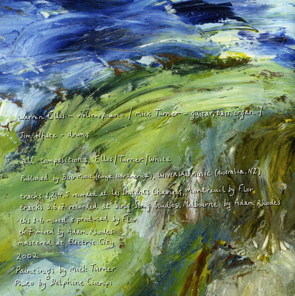 Tracks 1, 2, 4, 5 recorded at Les Instants Chavirés, Montreuil Tracks 3, 6, 7 recorded at Sing Sing Studios, Melbourne Published by Bug Music (Europe, Nth America), Universal Music (Australia, NZ) Licensed from Anchor & Hope Records Australia. ©&℗ Dirty Three 2002 On sticker: Made in Canada