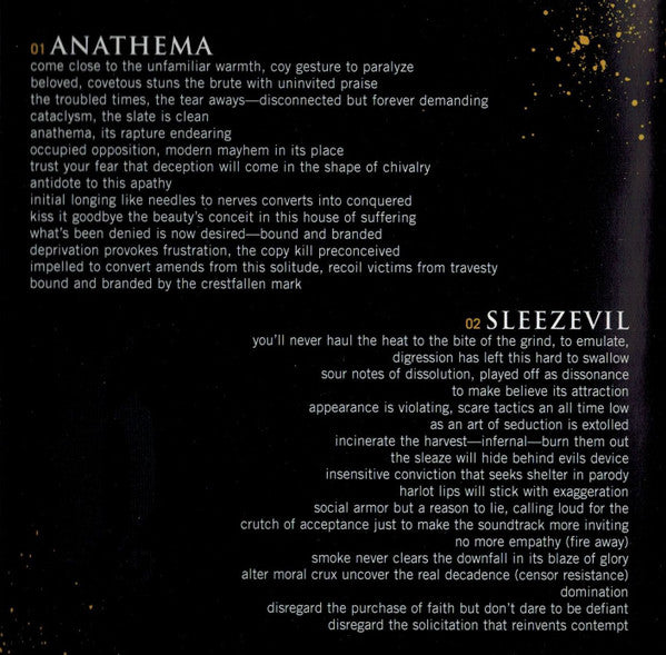 Standard jewel case with clear tray, label info-sheet & 12-page lyrics booklet. Recorded May, 2005 at Antfarm Studio, Aarhus, Denmark, www.antfarm.dk Stephen Kasner, www.stephenkasner.com Jason Upright for Superhero Artist Management jason@superherohq.com / www.superherohq.com HIMSA ✳ P.O. Box 2293, Seattle, WA 98111 ✳ www.himsa.org ℗ & © 2006 Prosthetic Records. Manufactured and distributed by Razor & Tie Direct, LLC P.O. Box 503 Village Station, New York, NY 10014 [Prosthetic Records logo www.prostheticrecords.com 11664 National Blvd. #413 Los Angeles, CA 90064