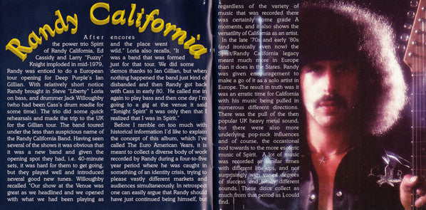 P. 1979-1982 The copyright in these sound recordings is owned by the estate of Randy California and issued under exclusive license to Evangeline Records Ltd. C. 2007 The estate of Randy California/Evangeline Records Ltd. Distributed by Universal