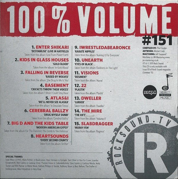 Card sleeve. This compilation (P) & © 2011 Rock Sound magazine. This CD is for promotional use and is only available with issue No.151 of Rock Sound magazine (Summer 2011). Track 1 taken from the album 'Live From Planet Earth'. Track 2 taken from the album 'In Gold Blood'. Track 3 taken from the album 'The Drug In Me Is You'. Track 4 taken from the album 'I Wish I Could Stay Here'. Track 5 taken from the album 'In Desolate Times'. Track 6 taken from the album 'Cerebral Ballzy'. Track 7 taken from the album 'For The Damned, The Dumb & The Delirious'. Track 8 taken from the album 'Drifter'. Track 9 taken from the album 'Ruining It For Everyone'. Track 10 taken from the album 'Darkness In The Light'. Track 11 taken from the album 'Home'. Track 12 taken from the album 'Plastik'. Track 13 taken from the album 'Dweller'. Track 14 taken from the album 'Volume II'. Track 15 taken from the album 'Regress'.