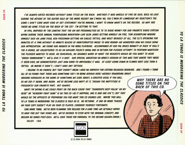 Yo La Tengo supported the fundraising efforts of New York's world-renowned independent radio outlet WFMU with annual studio visits. All listeners who pledged money during the band's appearances were offered the chance to request a favorite song that the band would then attempt to perform. This album compiles 30 WFMU highlights first broadcast between 1996 and 2003. Tracks recorded from 1997 to 2003. 1997 - tracks 2, 4, 8 and 26; 1998 - tracks 14, 19, 23 and 27; 1999 - tracks 9, 10, 11, 20 and 25; 2000 - tracks 3, 6, 13, 15, 16, 22 and 29; 2001 - tracks 1, 12 and 18; 2002 - tracks 7, 21, 28 and 30; 2003 - tracks 5, 17 and 24.