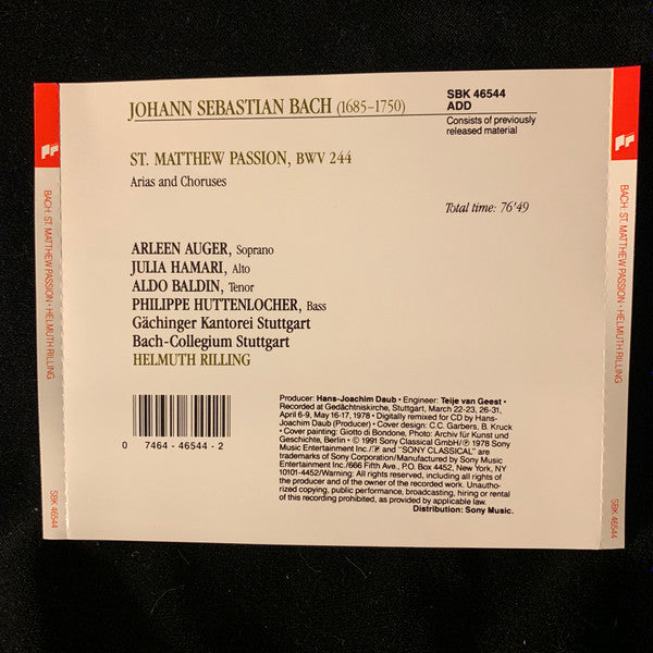 Consists of previously released material. Total Time: 76:49 Recording: Gedächtniskirche, Stuttgart, March & April, 1978. (P) 1978 Sony Music Entertainment Inc. (C) 1991 Sony Classical GmbH. Made in USA. Comes in standard jewel case with 12-page booklet.