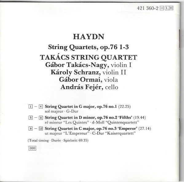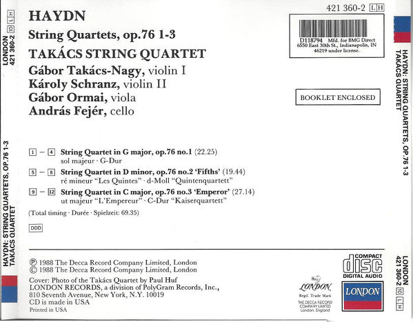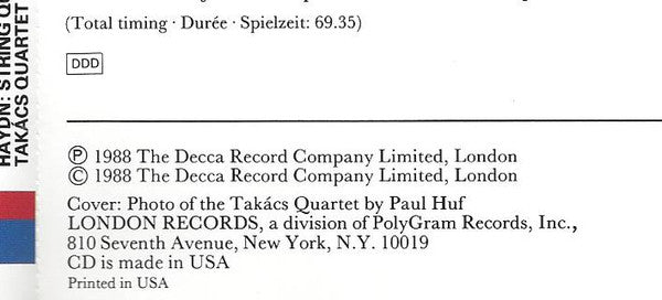 Total timing: 69:35 Recorded at Schubertsaal, Konzerthaus, Vienna in August 1987 ℗ 1988 The Decca Record Company Limited, London © 1988 The Decca Record Company Limited, London Made in USA [Printed on CD face at 3:00 CD is made in USA [Printed on bottom left of inlay sleeve Printed in USA [Printed on bottom left of inlay sleeve CD is packaged in a standard plastic black-tray jewel case along with a 12 page booklet, notes in English.