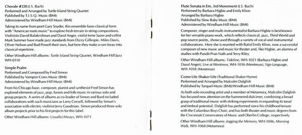 Titles for 3, 6, and 11 are abbreviated, and artist names are not given, on the outside packaging. Instrumental roles and members of ensembles are not directly credited; all such credits entered here are mentioned in the liner notes only.
