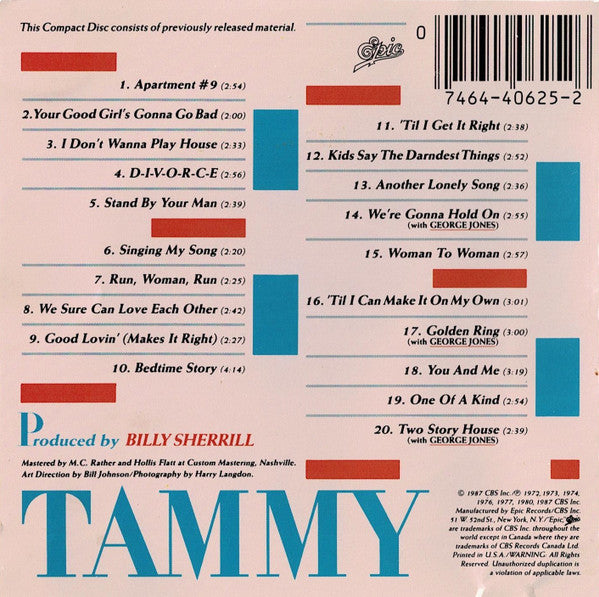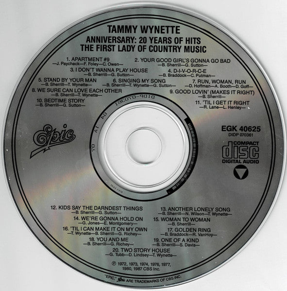 Tammy Wynette : Anniversary: Twenty Years Of Hits (CD, Comp, RP)