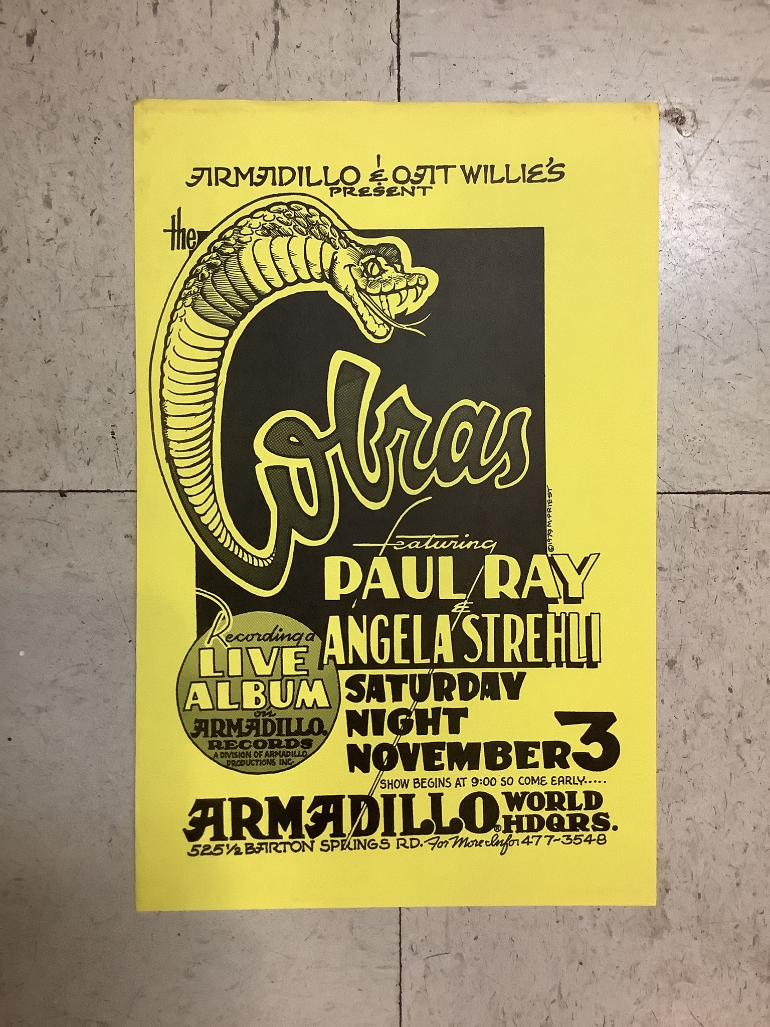 Vintage Armadillo World Headquarters poster designed by Micael Priest. Measures 11x17