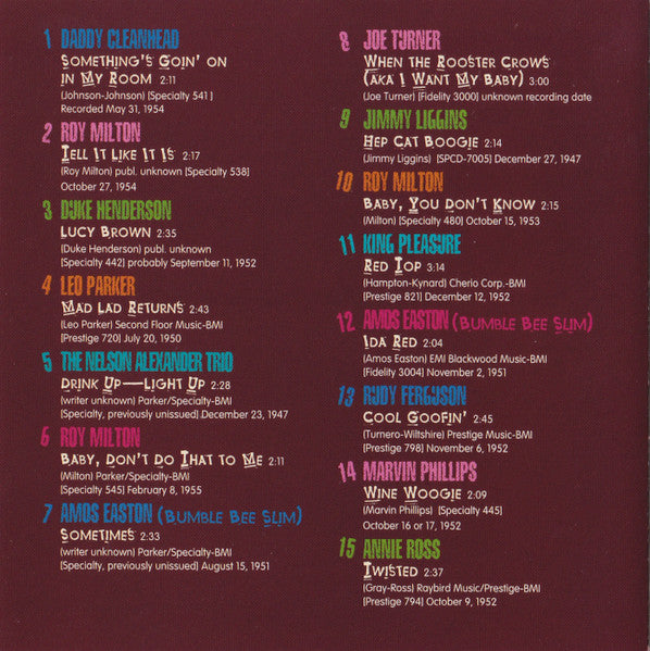 Style: East Coast Blues, Avant-garde Jazz, Boogie Woogie, Country Blues, Jump Blues, Rhythm & Blues, Rock & Roll, Doo Wop