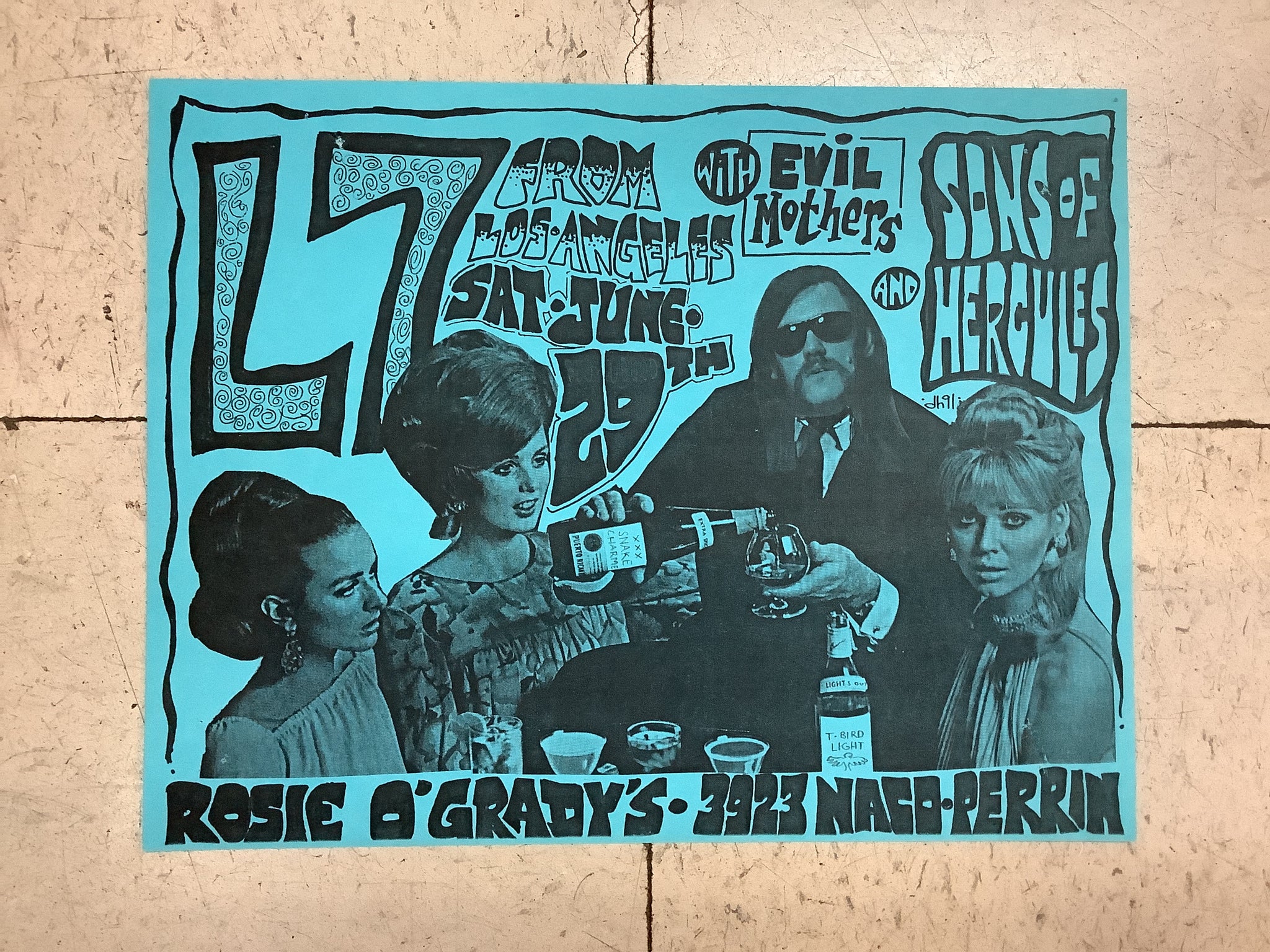 Vintage flyer from L7's show with Evil Mothers and Sons of Hercules at Rosie O' Grady's on June 29th, 1991. Signed D.H.