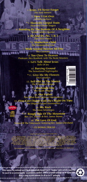 Variant box édition + serie Incredible - [r1366683 Printed box front cover: Rhino Incredible Collections. CD Bonus tracks: 3, 6, 11, 17. On track 8, the liner notes mistakenly credit [a1172628, a Memphis-based backing band, instead of [a1283364, Alex Bradford's backing vocal group, who are clearly credited on the /master/779316original Speciality 78. Track 1 rec. 2/3/1954, first released as Specialty single #868, 10/1954. Track 2 rec. 8/1951, first released as Apollo single #248, 10/1951. Track 3 rec. 16/2/1937, first released as Bluebird single #6887, 3/1937. Track 4 rec. 5/6/1938, first released as Decca single #48004, 7/1946. Track 5 first released as Gotham single #716, 7/1952. Track 6 rec. 14/11/1957, first released as Vee-Jay single #854, 1/1958. Track 7 first released as Vee-Jay single #4169, c. 1964. Track 8 rec. 6/1953, first released as Specialty single #852, 9/1953. Track 9 rec. 1/1951, first released as Peacock single #1584, 11/1951. Track 10 rec. 1/1956, first released as Peacock single #1765, 12/1956. Track 11 first released as Nashboro single #564, 10/1955. Track 12 rec. 1955, first released as Nashboro single #569, 2/1956. Track 13 rec. 11/9/1956, first released as Vee-Jay single #224, 12/1956. Track 14 first relased as Peacock single #1550, 10/1950. Track 15 first released as Specialty single #839, 1/1953. Track 16 first released as Specialty single #836, 11/1952. Track 17 from album 'Rough Side Of The Mountain', AIR #10059, 1982. Track 18 first released as HOB single #113, 10/1959. Compilation Ⓟ & © 1992 Rhino Records Inc.