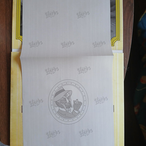 From hype sticker: "Custom die cut jacket with rolling paper insert & printed record sleeves!" "Pressed on Lemon Yellow double vinyl"