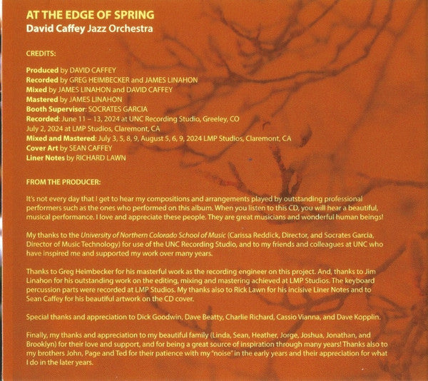 Recorded June 11-13, 2024 at UNC Recording Studio, Greeley, CO. Recorded July 2, 2024 at LMP Studios, Claremont, CA.