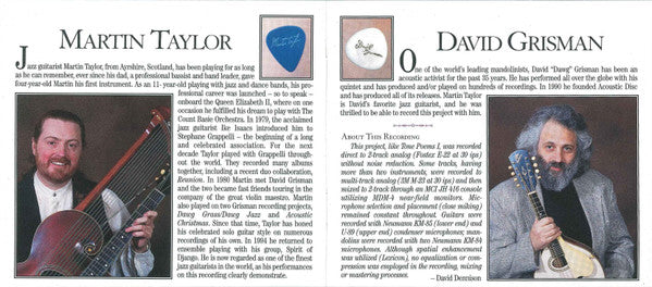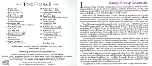 Recorded at Dawg Studios, January 1995. "Swanee" dedicated to Ralph Rinzler. "My Romance" dedicated to James D'Aquisto. "Here's That Rainy Day" dedicated to Bob Alekno. "Over the Rainbow" dedicated to Jerry Garcia. CD and additional 48 pages full color book housed in a cardboard slipcase.