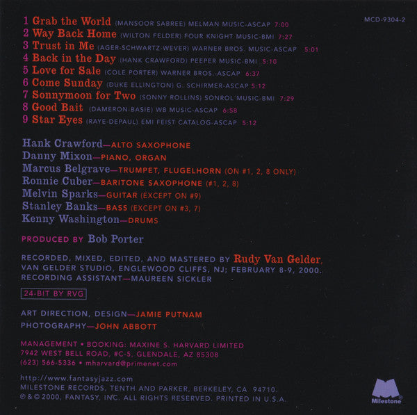 This is the promotional version of [r15933271. It was issued with the word PROMOTIONAL printed across the CD and with a hole punch through the barcode. Recorded February 8-9, 2000. Total Time 56:29