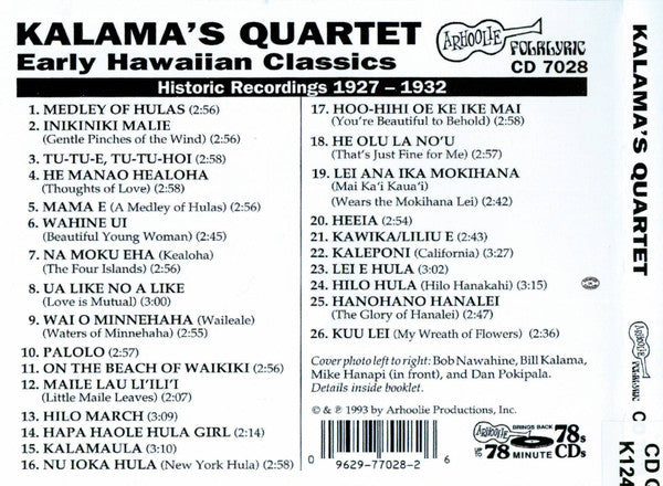 Kalama's Quartet : Early Hawaiian Classics 1927 - 1932 (CD, Comp, RE)