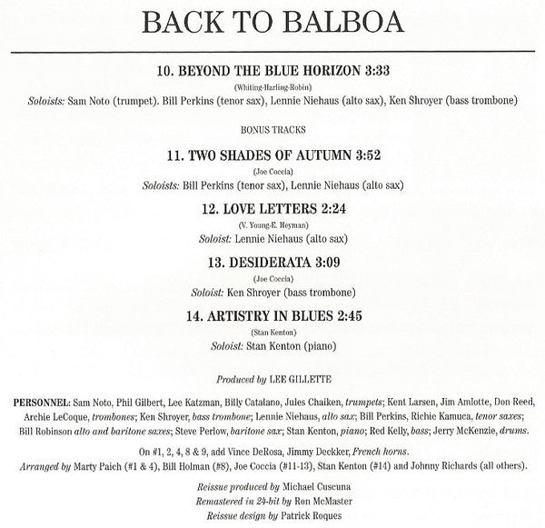 Stan Kenton : Back To Balboa (CD, Album, Mono, RM)