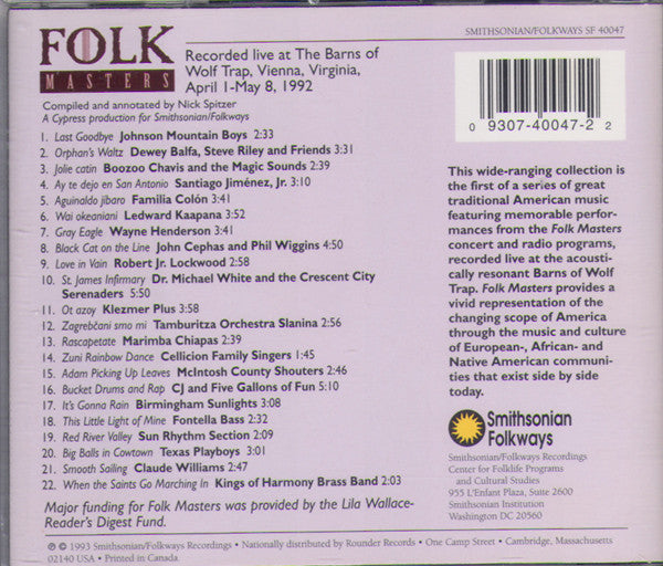 Recorded live at The Barns of Wolf Trap, Vienna, Virginia, April 1 - May 8, 1992. Michael White and the Crescent City Serenaders appear courtesy of Antilles Records.