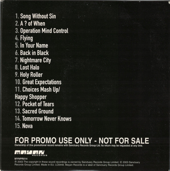 For Promo Use Only - Not For Sale Issued in a cardboard sleeve. Top opening.