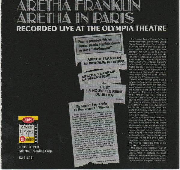 Aretha Franklin : Aretha In Paris (CD, Album, RE)
