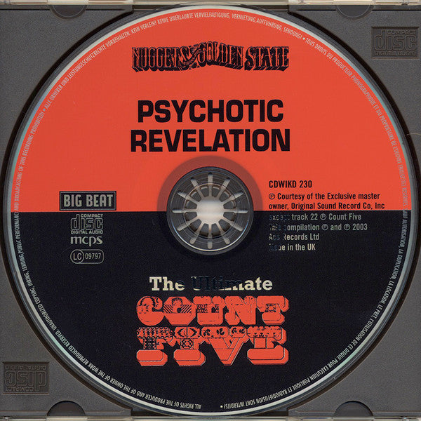 Pressing version: "Made in the UK" printed on back cover and disc art. Contains tracks from the 1966 'Psychotic Reaction' LP (Double Shot DSM 1001), non LP tracks, demos and previously unreleased material. All tracks Mono except 15, 16 and 21 Stereo. Tracks 1, 8, 12, 13, 20, 22 and 23 previously unissued. Packaging: standard plastic jewel box case, off-black tray, 24 page stapled cover booklet.