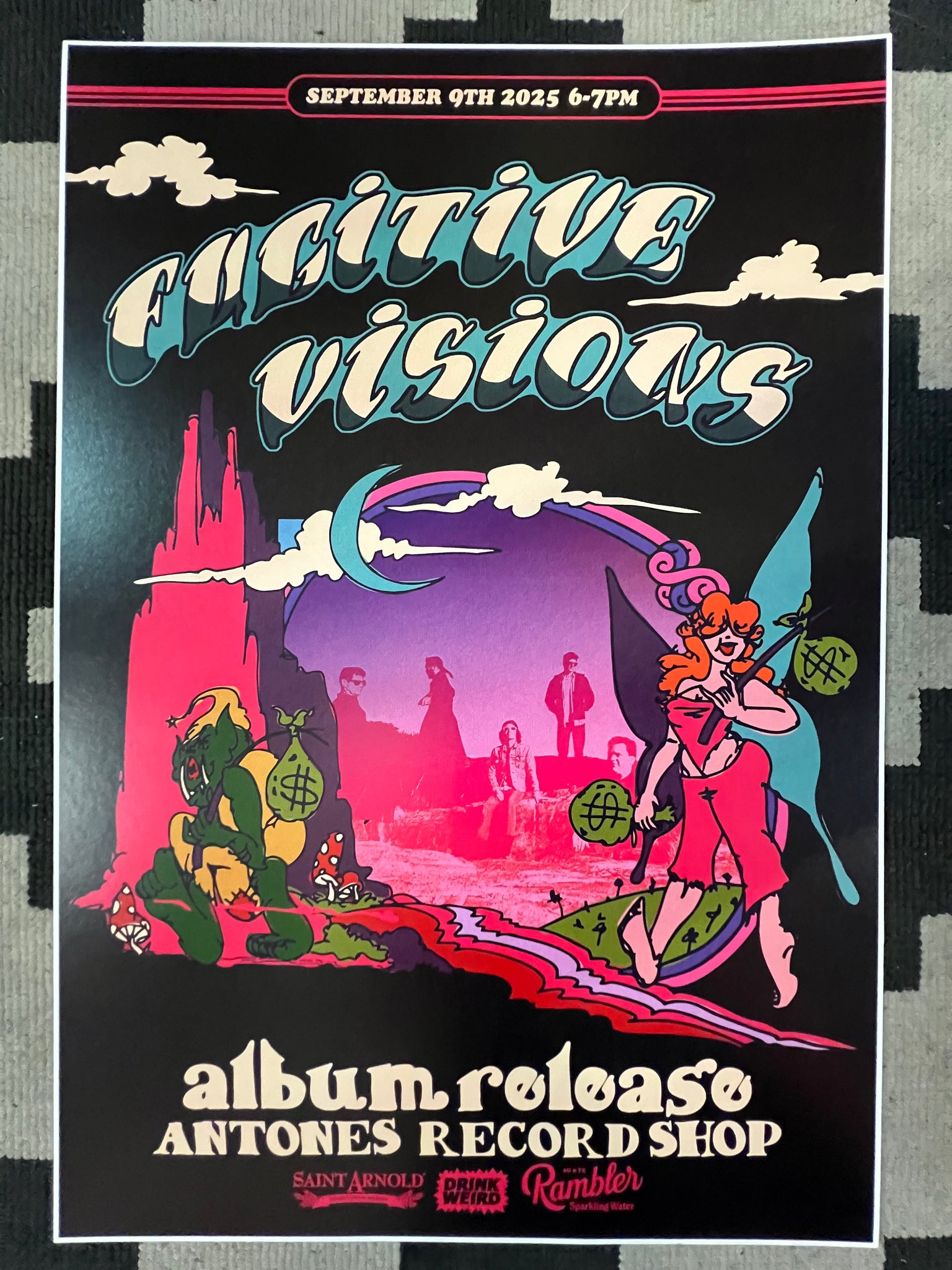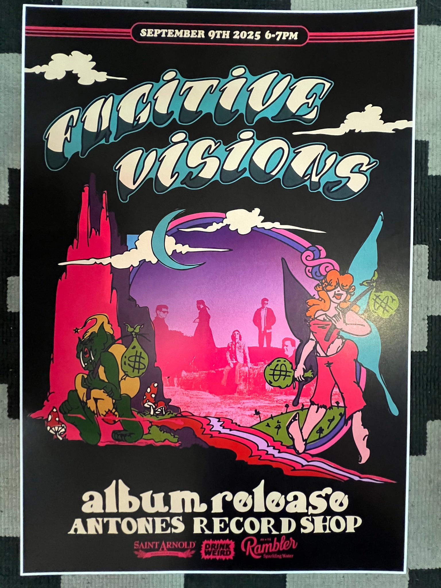 Fugitive Visions instore poster for their record release party 9/9/2025
