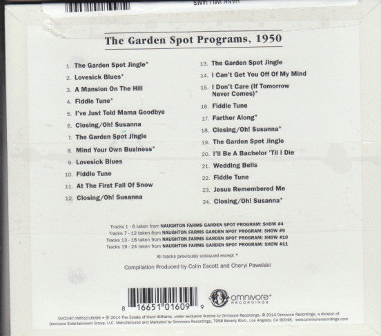 Tracks 1 - 6 taken from NAUGHTON FARMS GARDEN SPOT PROGRAM: SHOW #4 Tracks 7 - 12 taken from NAUGHTON FARMS GARDEN SPOT PROGRAM: SHOW #9 Tracks 13-18 taken from NAUGHTON FARMS GARDEN SPOT PROGRAM: SHOW #10 Tracks 19-24 taken from NAUGHTON FARMS GARDEN SPOT PROGRAM: SHOW #11 Tracks 1, 2, 4, 8,15,17,18 and 12 previously issued on The Garden Spot Programs, 1950 - Extended Play (Omnivore OVS10-86, 2014)