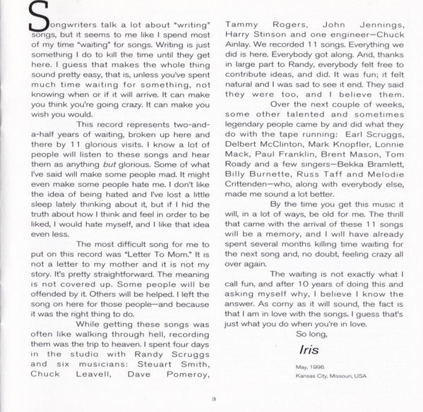 ©℗ 1996 Warner Bros. Records Inc. for the U.S. and WEA International Inc. for the world outside of the U.S. All songs ASCAP except track 5, ASCAP/BMI