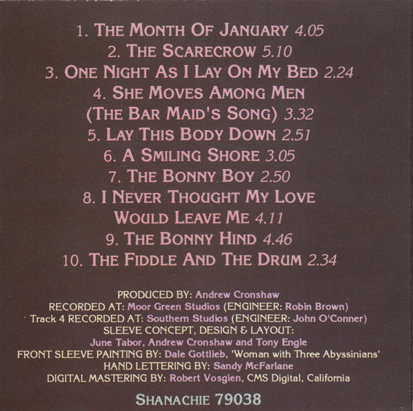 Released in a standard jewel case with a sepia tray. The 2 panel (4 page) fold-out booklet is printed in English and in addition to the cover art features; photos, track list with duration's, production credits, track credits and Sources. Case rear cover shows another track list no duration's. Front Sleeve Painting By: Dale Gottlieb, 'Woman With Three Abyssinians'