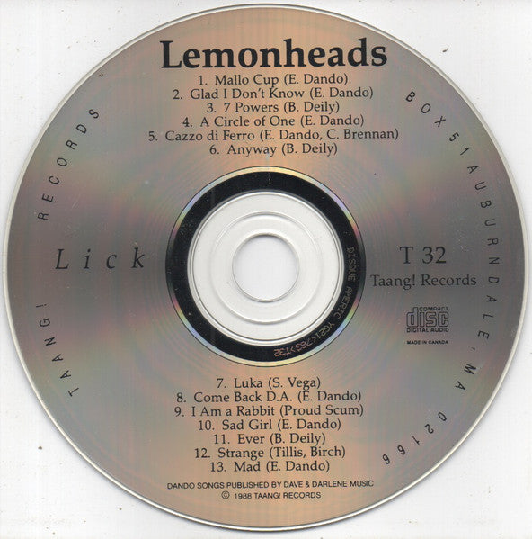 Cat# variations: On spine: TAANG! 32 On disc: T 32 Dando songs published by Dave & Darlene Music © 1988 Taang! Records In the U.S. '[r=6279212' was issued as an 11 Track LP and a 13 Track CD by Taang! Records during April 1989 (TAANG! 32). Track 1, plus 3 to 6 & 8 were recorded by Terry Katzman, then Tom Hamilton took over in February/March 1989 after studio issues and equipment failure during the Katzman sessions. Tracks 2 & 9 are re-recordings of previously issued songs from the '[r=1949103' 7-inch EP. Track 7 was recorded in 1988, but was left off the album '14107' [released August 1988. Track 10 was recorded in January 1987, and first issued on the various artists compilation '[r=2788156', which was released by 77 Records in 1987 (001). Track 11 was recorded in August 1986 by Tom Hamilton, but was left off the album '14102' [released June 1987. Tracks 12 & 13 were also issued on the '14148' 7-inch single, which was released by Taang! in 1989 (TAANG! 31 / T-31). Track 13 was recorded in June 1986 by Tom Hamilton, but was left off the album '14102' [released June 1987.