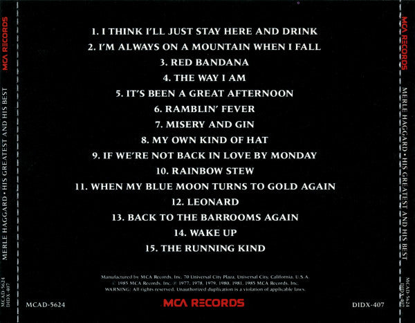 Merle Haggard : His Greatest And His Best (CD, Comp)