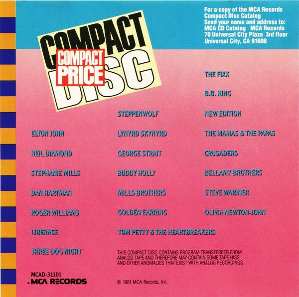 This compact disc contains program transferred from analog tape and therefore may contain some tape hiss and other anomalies that exist with analog recordings. CD Master tape prepared using the JVC Digital Audio Mastering System