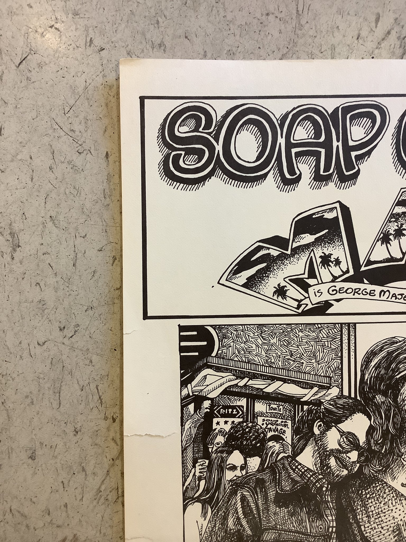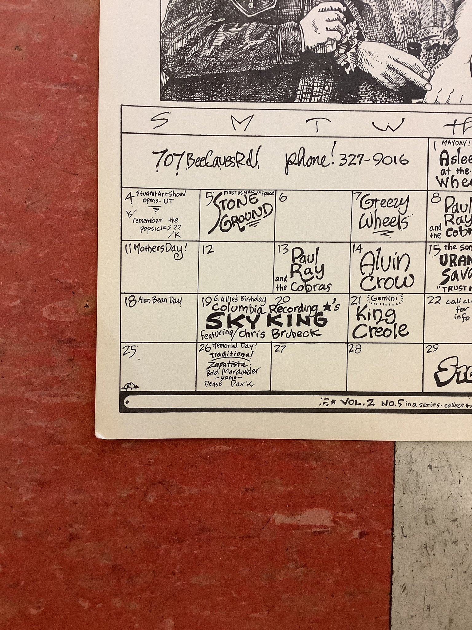 Vintage Soap Creek Saloon poster designed by Kerry Awn. Promoting shows with Asleep at the Wheel, Roky Erickson, Paul Ray and The Cobras, Alvin Crow, Uranium Savages, Augie Meyers, and more! George Majewski look alike month, May 1975.
