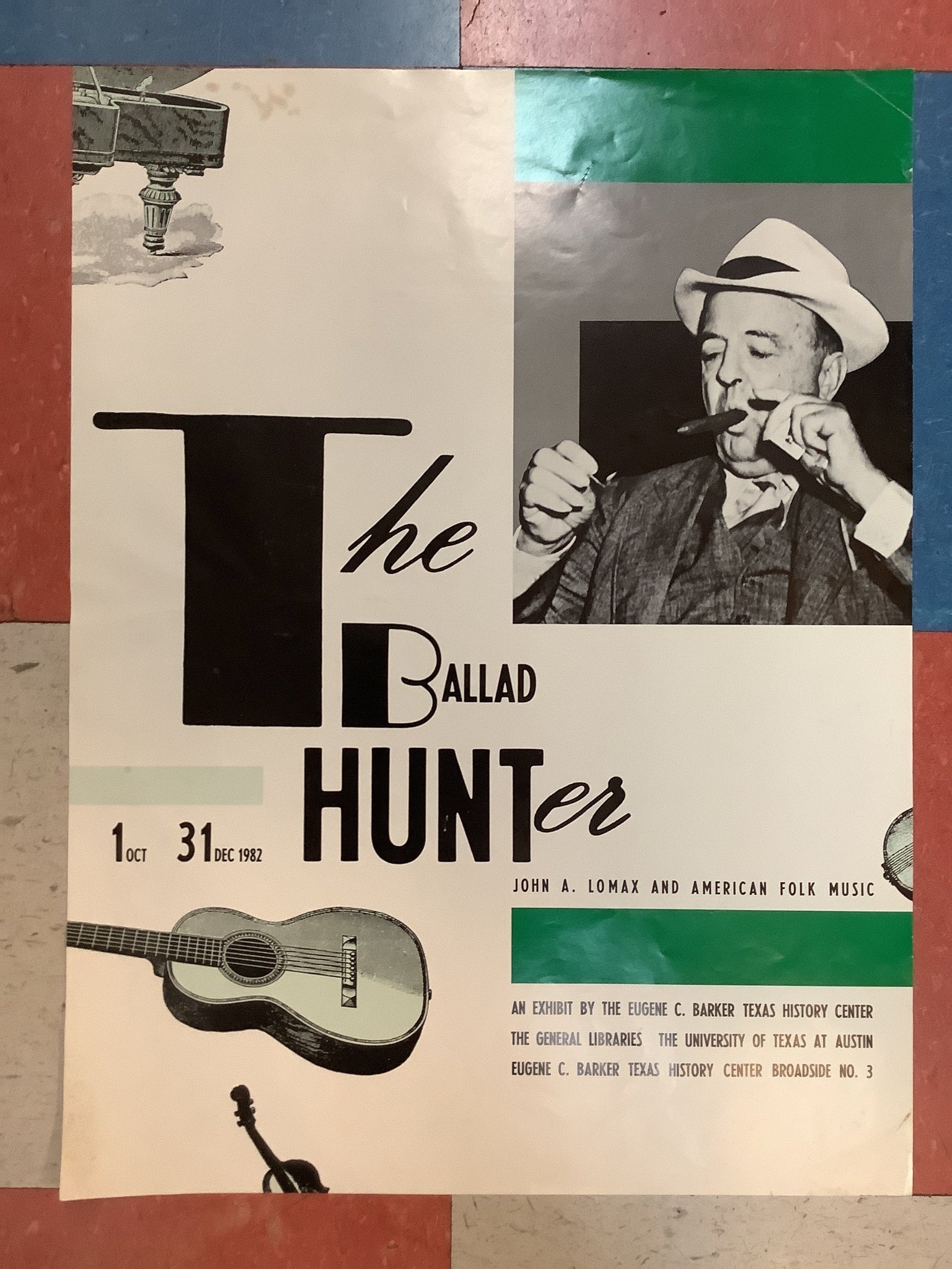 Poster from The Ballad Hunter: John A. Lomax and American Folk Music, an exhibit by The Eugene C. Barker Texas History Center, October-December 1982.