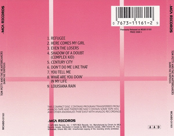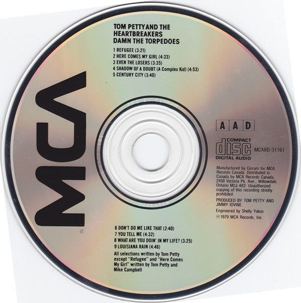 Manufactured by Cinram for MCA Records Canada. Previously Released as MCAD-31161 Ⓟ © 1979 MCA Records, Inc. The printed track durations on the disc face are not accurate, particularly tracks 3, 4 & 9. These are the printed durations: 1 (3:21) 2 (4:33) 3 (3:35) 4 (4:53) 5 (3:40) 6 (2:40) 7 (4:32) 8 (3:25) 9 (4:46)