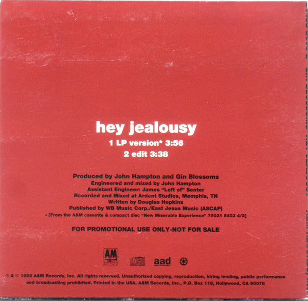 Gin Blossoms : Hey Jealousy (CD, Single, Promo)