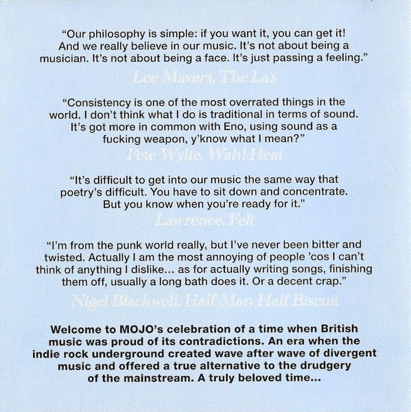 MOJO present a treasury of classic British indie rock A 23 Ears Production for MOJO Magazine. Given away free with MOJO March 2008. Not to be sold separately. Photography: Rex Features / Diana Dors and Amy Halsey / Bicycles. MCPS. #3: BBC Session recorded for the Liz Kershaw show 31/05/1988. #12: BBC Session recorded for the Mike Read show 16/10/1980. Available on: 01, [r1127924 02, [r683274 03, [r876422 04, [r1725318 05, [r1576294 06, [r629442 07, [r388895 08, [r497733 09, [r1387528 10, [r3056563 Vol. 2 11, [r1189079 12, [r1224036 13, [r504978 14, [r846977 15, [r3201284