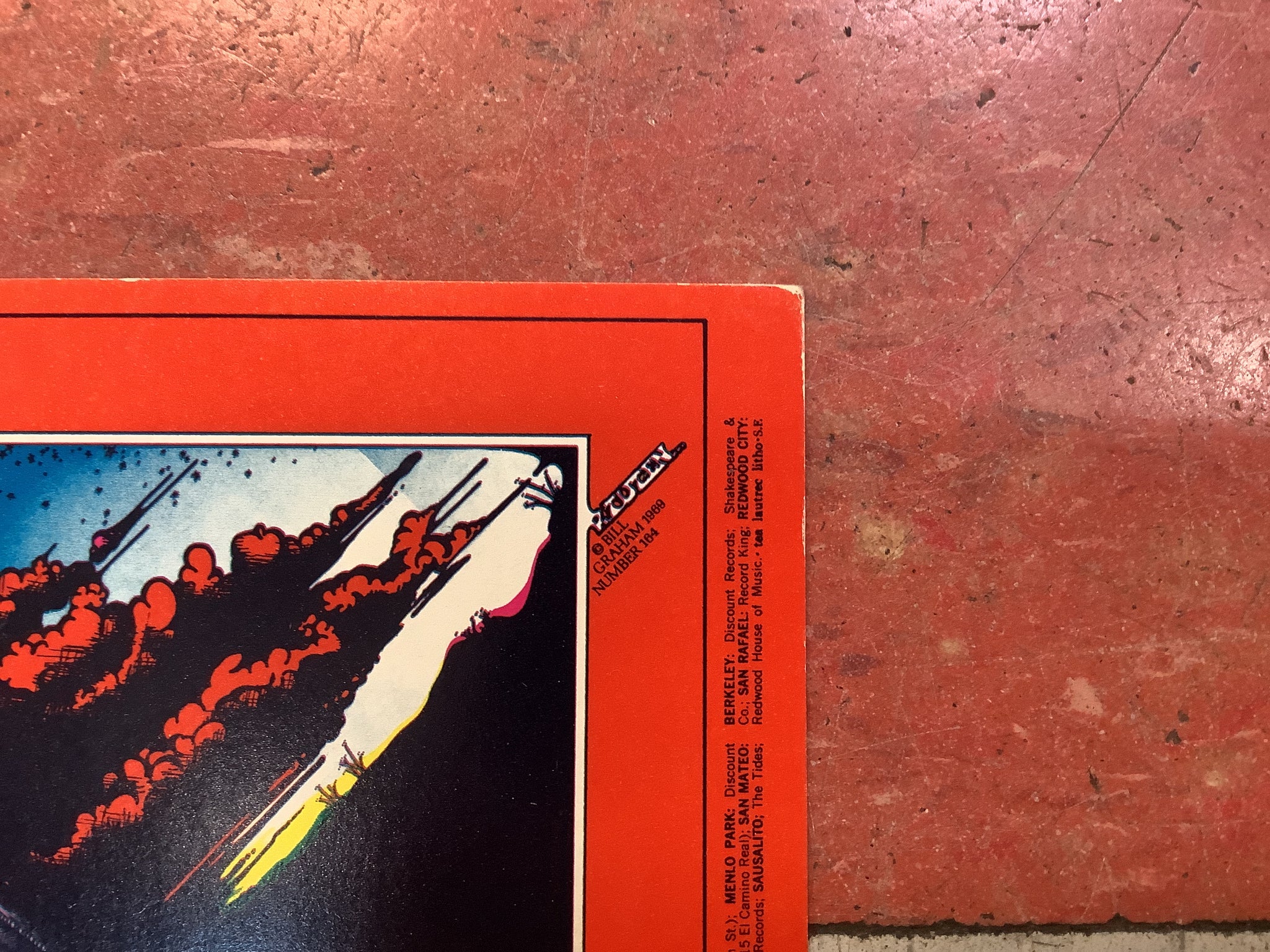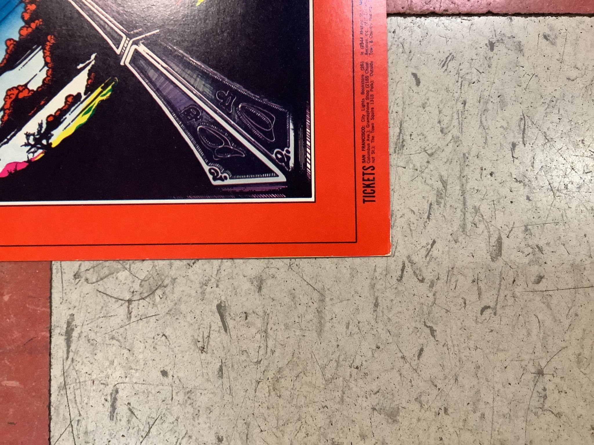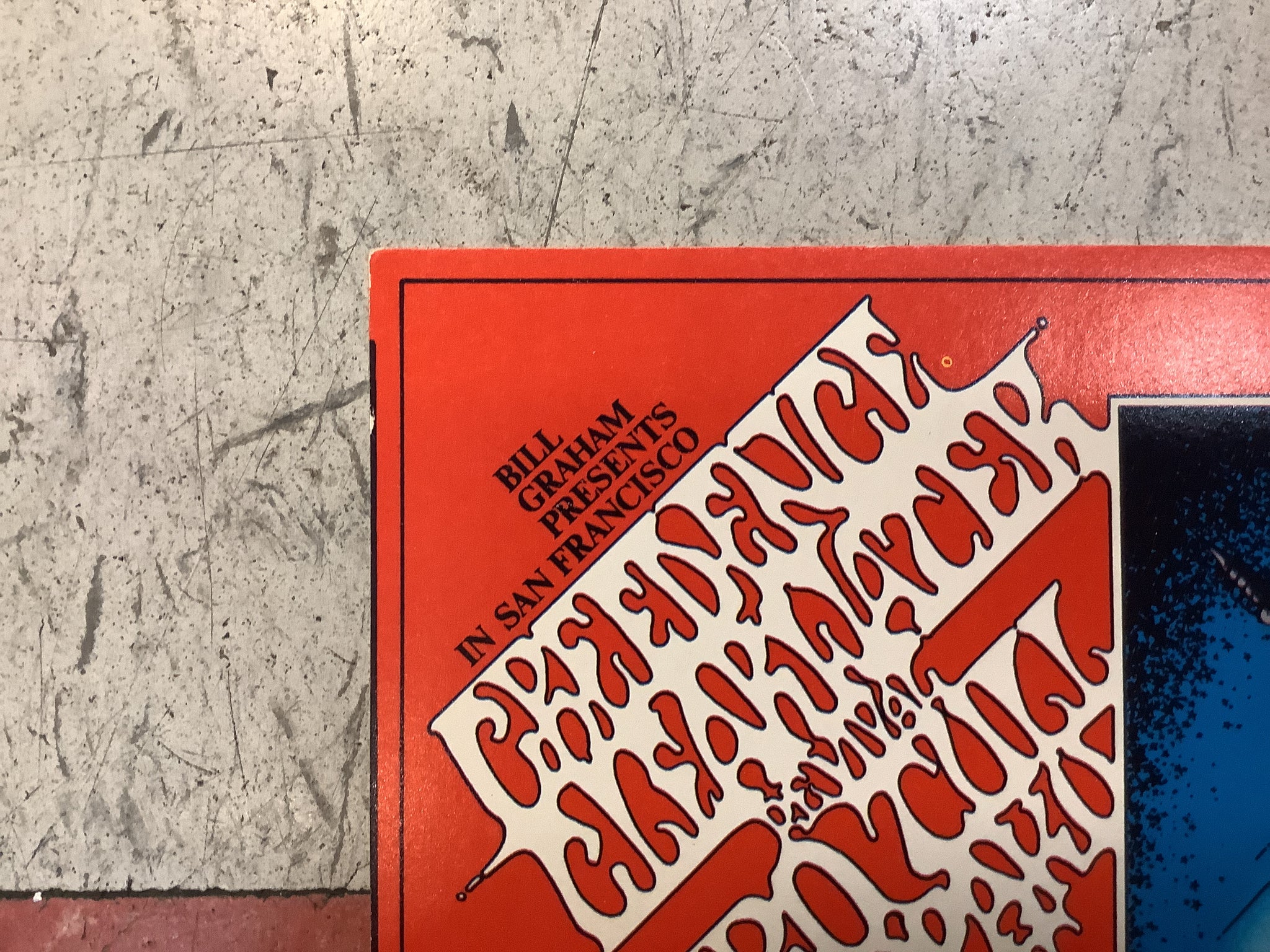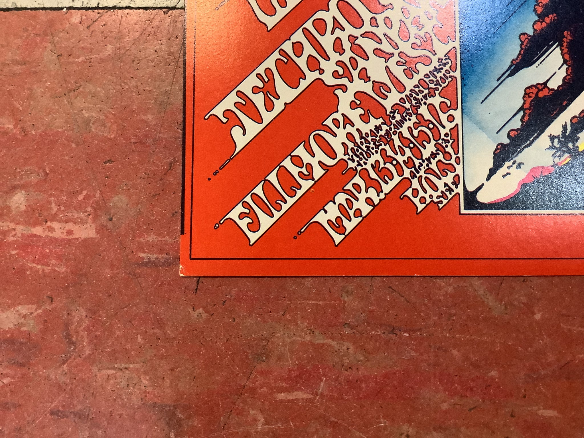 Vintage postcard advertising shows with Creedence Clearwater Revival, Jethro Tull, and Sanpaku at Fillmore West on March 13, 14, 15, & 16 in 1969. Designed by Randy Tuten.