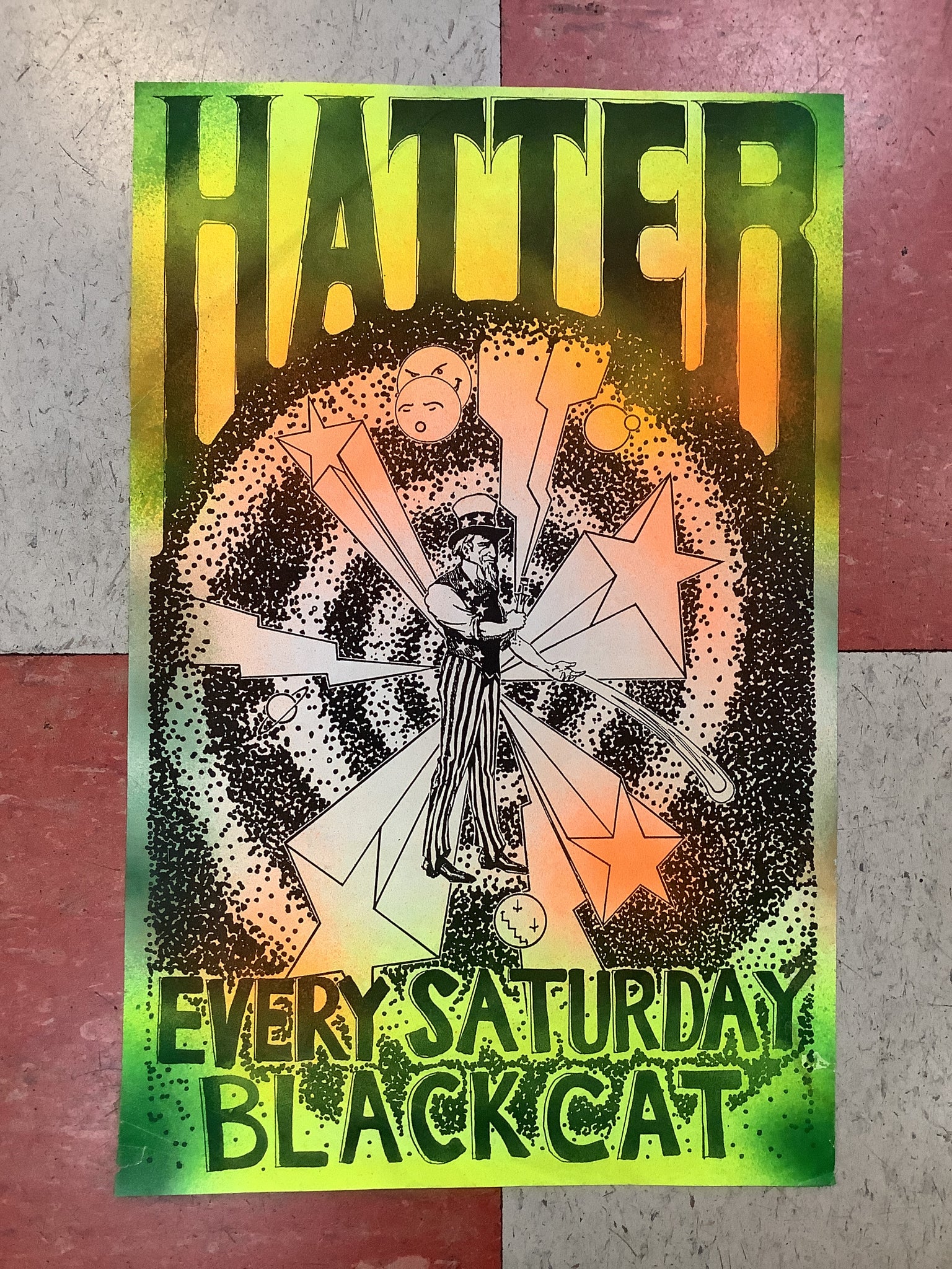 Poster promoting Hatter's residency at Black Cat. Exact year/poster artist unknown.