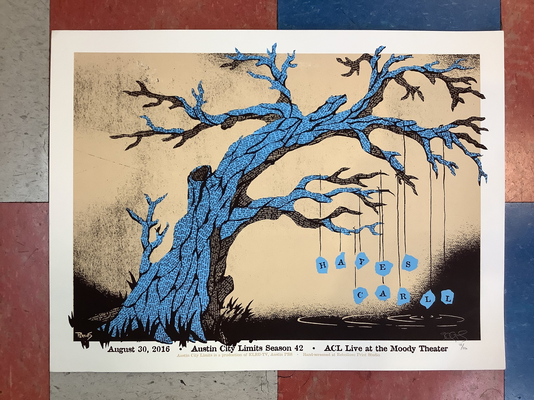 Original poster from Hayes Carll's appearance on Austin City Limits, Season 42. Taped on August 30th, 2016. Designed and hand signed by Billy Perkins. Numbered 58/250.