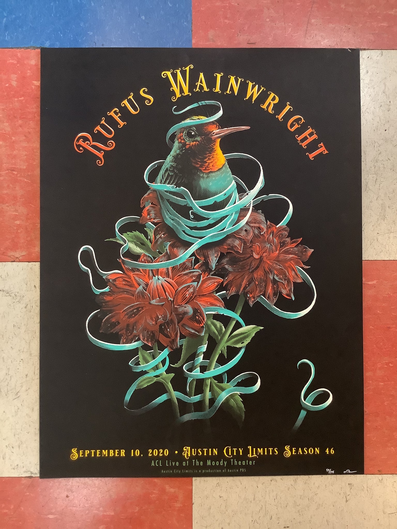 Original poster from Rufus Wainright's appearance on Austin City Limits, Season 46. Hand signed and number by the poster artist, 57/175.