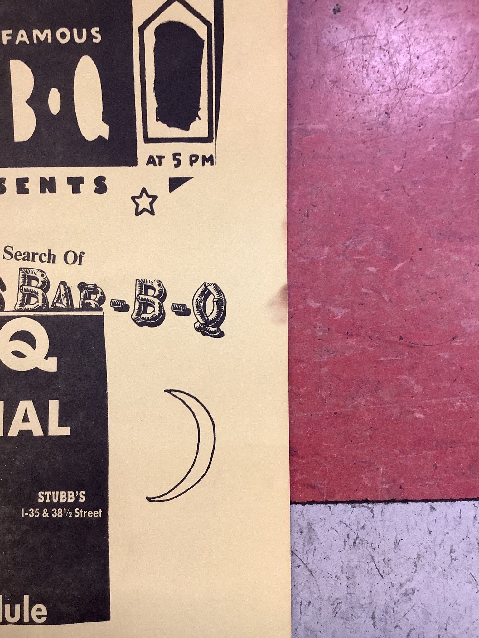 Vintage Stubb's BBQ music calendar poster. Exact year unknown.