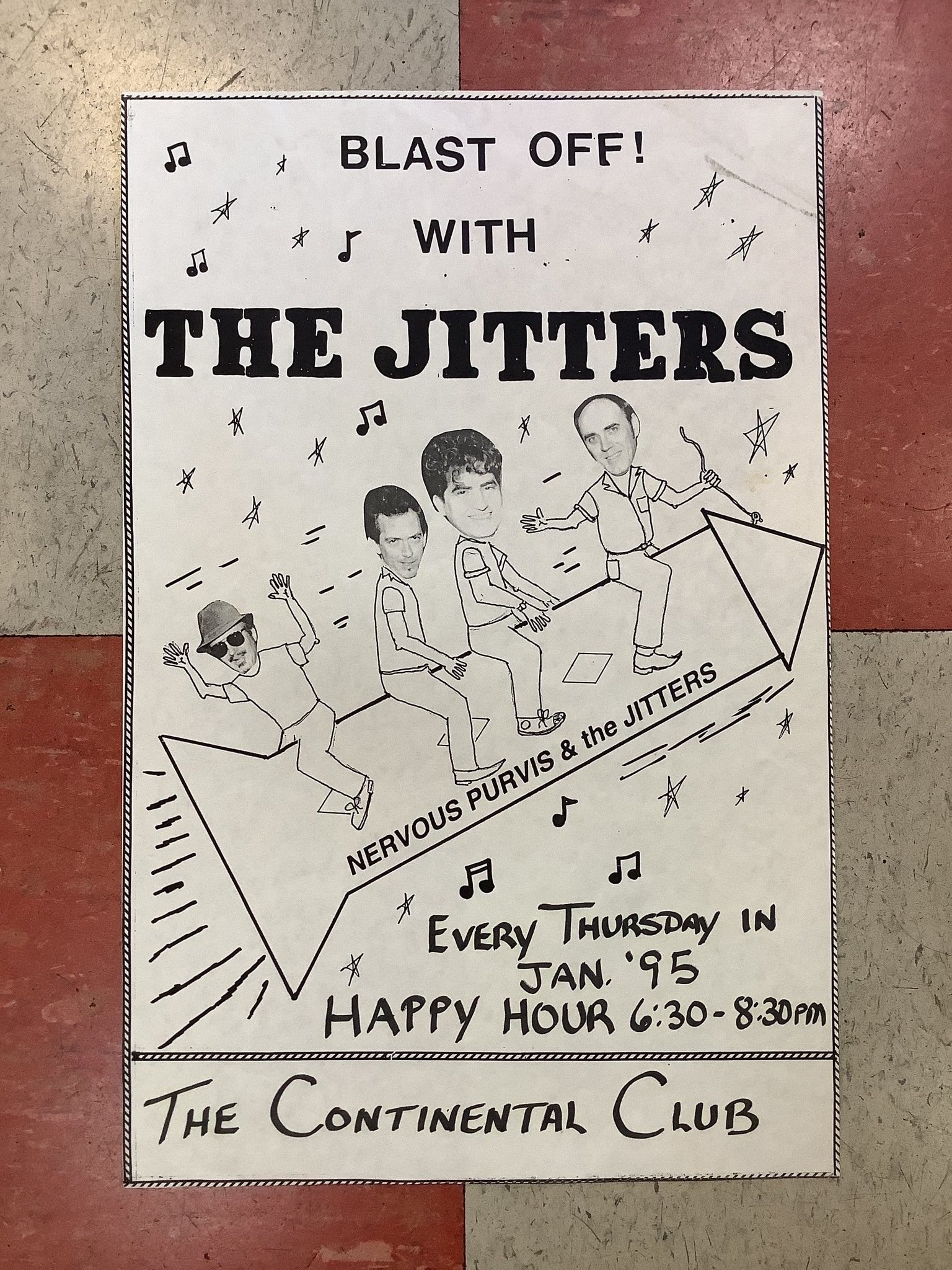 Vintage Continental Club promoting a residency with Nervous Purvis and The Jitters in January 1995. Poster artist unknown.