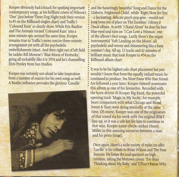 Disc 1: Tracks 1-12 from the Columbia album I Stand Alone (1968) Disc 2: Tracks 1-12 from the Columbia album You Never Who Your Friends Are (1969) Tracks 13-17 from the Columbia album Easy Does It (1970) Tracks 18-19 from the United Artists Original Soundtrack album "The Landlord" (1970)