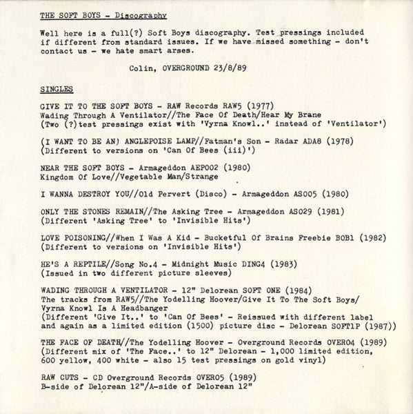 The Soft Boys : Raw Cuts (CD, Maxi, RE)